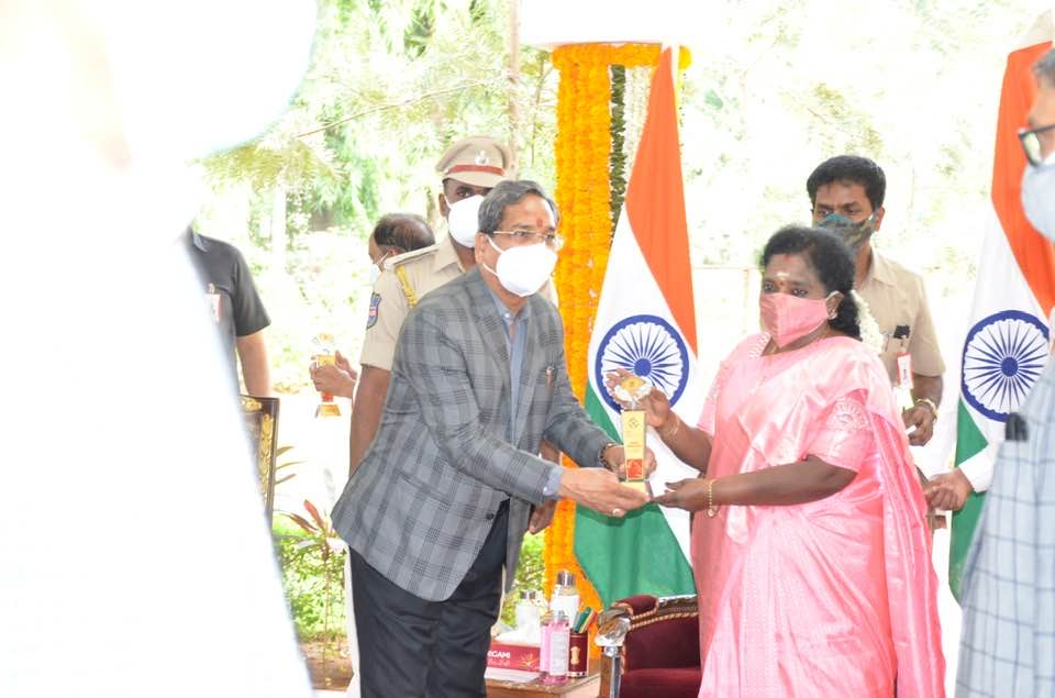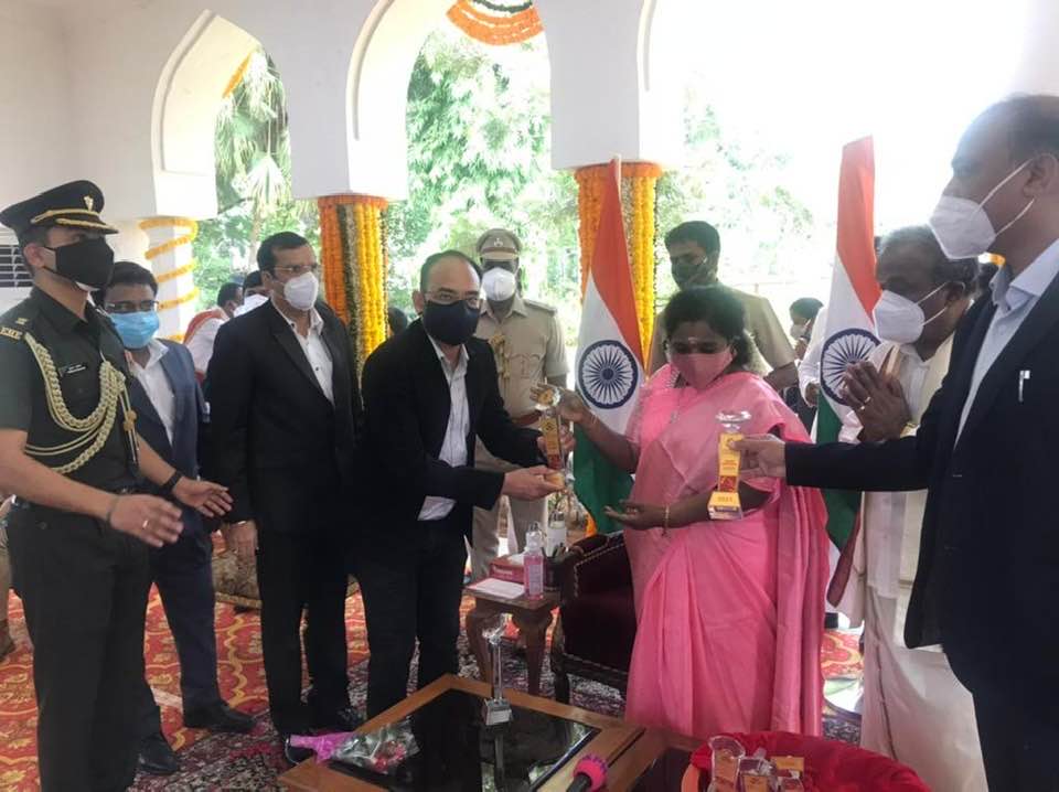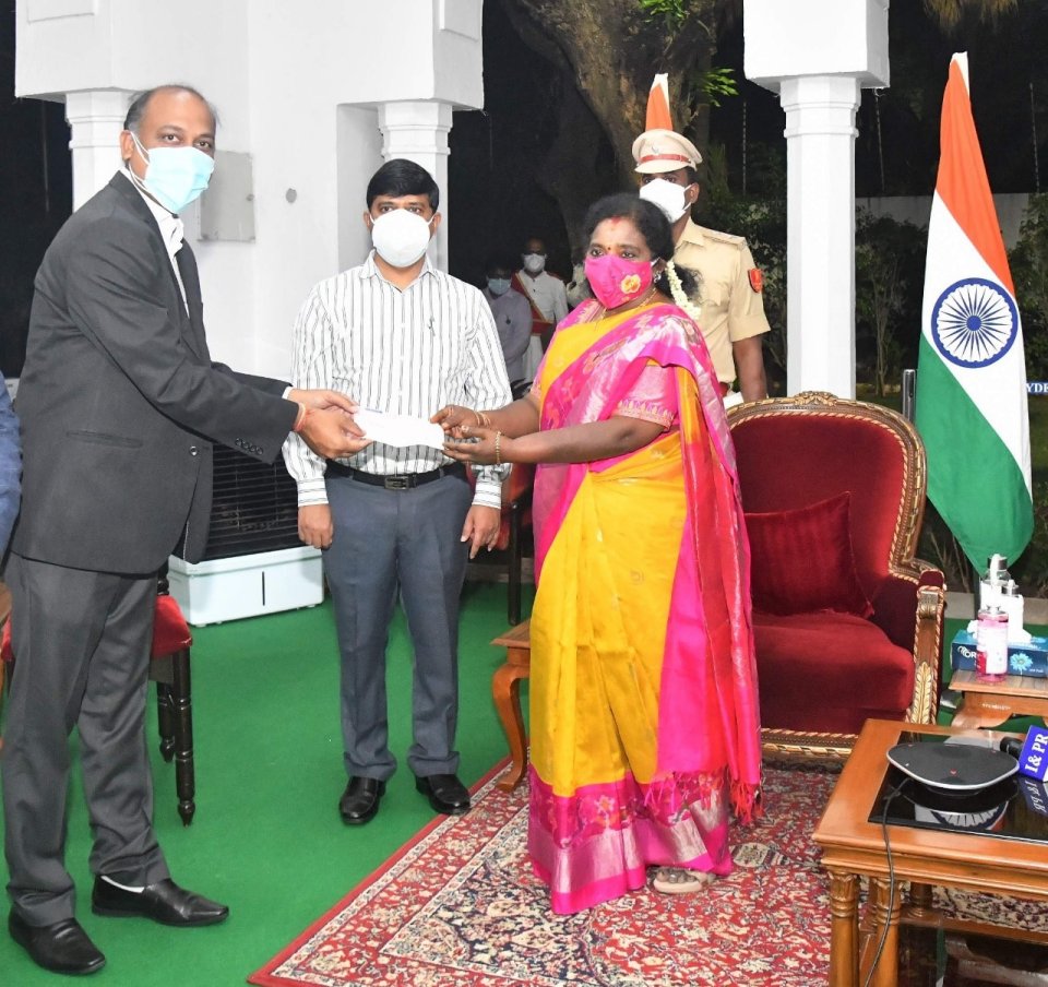 Haryana Nagrik Sangh donating Pandemic Relief Material to Honble Governor of Telangana & Lieutenant Governor of Puducherry at Raj Bhavan Hyderabad.